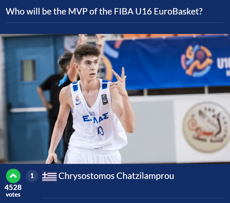 Έτσι η FIBA τον συμπεριέλαβε στη λίστα με τους αθλητές οι οποίοι είναι υποψήφιοι για το βραβείο του MVP και αυτή τη στιγμή προηγείται με 4528 ψήφους έναντι 4252 του Ισραηλινού, Αβίβ Αρόνοβ.