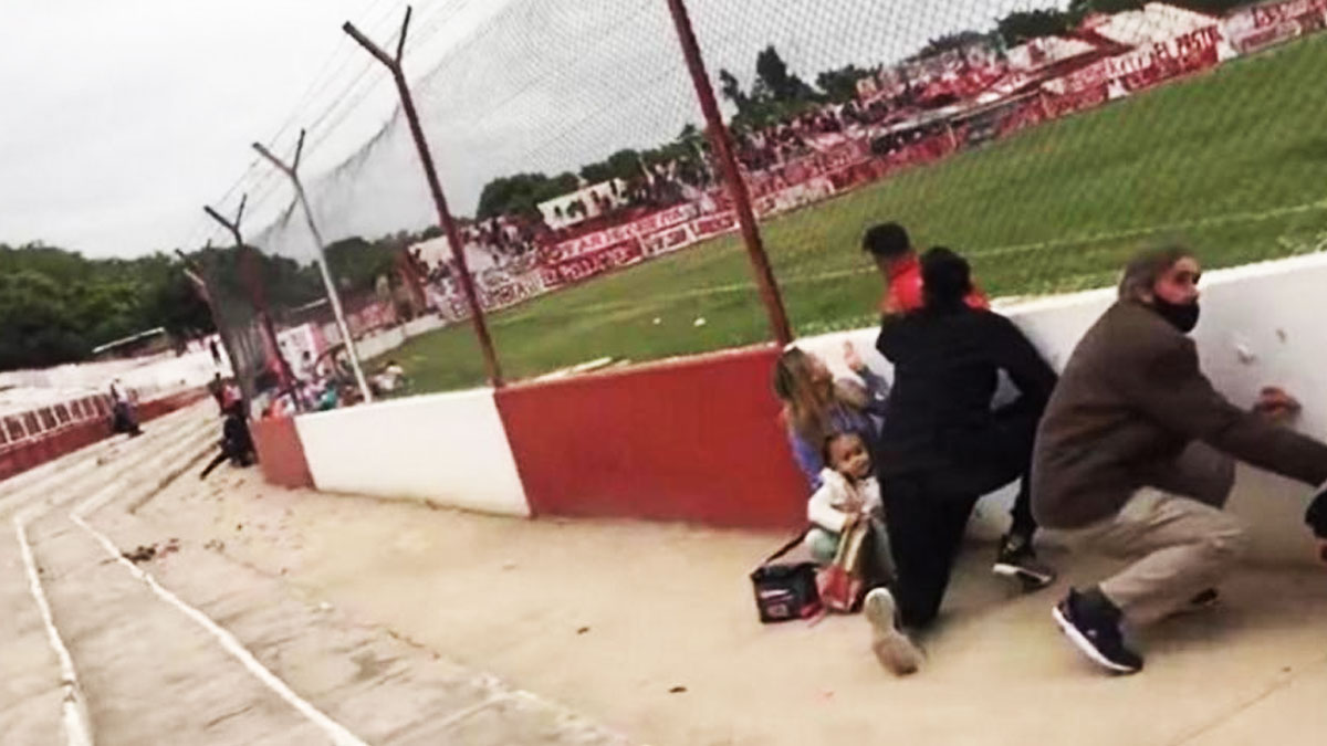 Νωρίτερα, οι ποδοσφαιριστές των δύο ομάδων τράπηκαν σε… άτακτη φυγή από το γήπεδο, με κάποιους εξ αυτών να τρέχουν να καλυφτούν.
