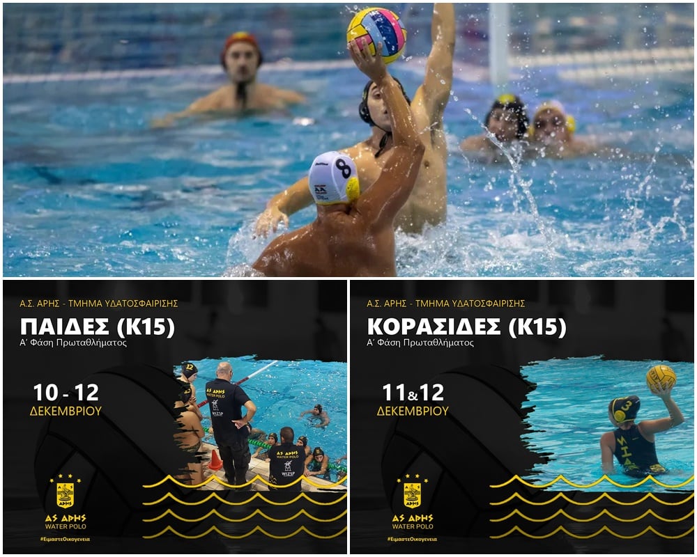 «Το τριήμερο περιλαμβάνει δράση για τους Παίδες και τις Κορασίδες Πόλο του ΑΡΗ, οι οποίοι ρίχνονται στη μάχη της πρώτης φάσης των πρωταθλημάτων τους. Οι Παίδες ξεκινούν απόψε Παρασκευή (10/12) κόντρα στον ΠΑΣ Φοίβο και το Σαββατοκύριακο αγωνίζονται με ΟΦΘ, ΕΑΤΕΚ και ΟΘΑ Καβάλας.