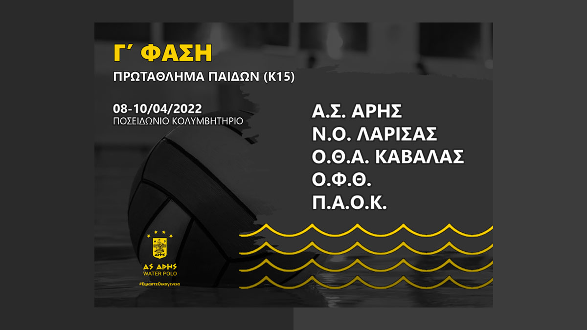 Η ομάδα Πόλο Παίδων του Άρη ξεκινά απόψε (08/04) τις υποχρεώσεις της στη Γ’ φάση του Πρωταθλήματος Κ15.