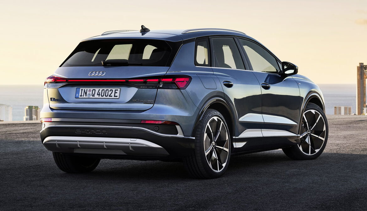 Audi Q4 e-tron 50 quattro: Δύο ηλεκτροκινητήρες 299 PS, τετρακίνηση, 0-100 km/h σε 6,2″, τελική ταχύτητα 180 km/h, μπαταρία 77 kWh, αυτονομία 485 km, δυνατότητα φόρτισης έως 7,4 kW με εναλασσόμενο ρεύμα ή έως 100 kW σε ταχυφορτιστή με συνεχές ρεύμα.