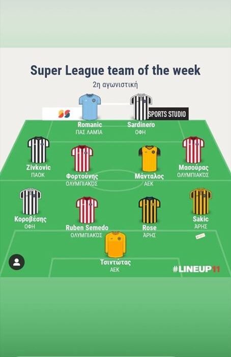 Ροζ και Σάκιτς στην καλύτερη ενδεκάδα της 2ης αγωνιστικής από γνωστή ιστοσελίδα (pic)