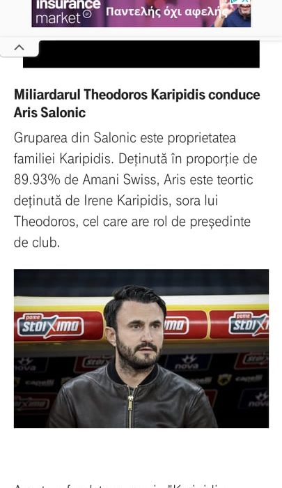 Μάλιστα μιλάει και για την οικονομική επιφάνεια του Θόδωρου Καρυπίδη λέγοντας: “Το 2014 η οικογένεια Καρυπίδη μπήκε στον κόσμο του ποδοσφαίρου και ανέλαβε τον Άρη στην τρίτη κατηγορία. Η περιουσία της οικογένειας ανέρχεται στα 1,2 δισεκατομμύρια ευρώ.”