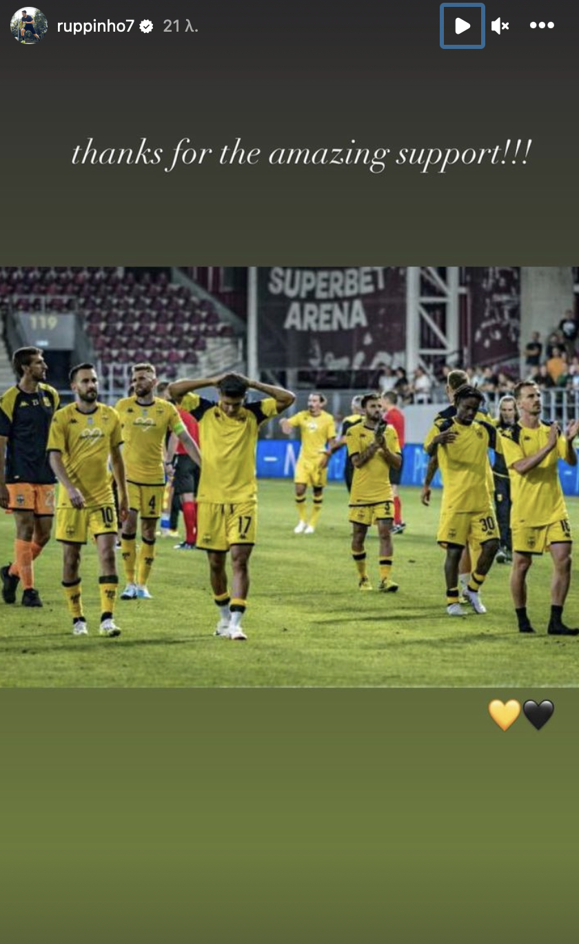 Μέσω ανάρτησής του στα social media ο Γερμανός μέσος ευχαρίστησε τον κόσμο του Άρη που βρέθηκε στο Βουκουρέστι και στήριξε την ομάδα στο παιχνίδι με τη Ντιναμό Κιέβου.