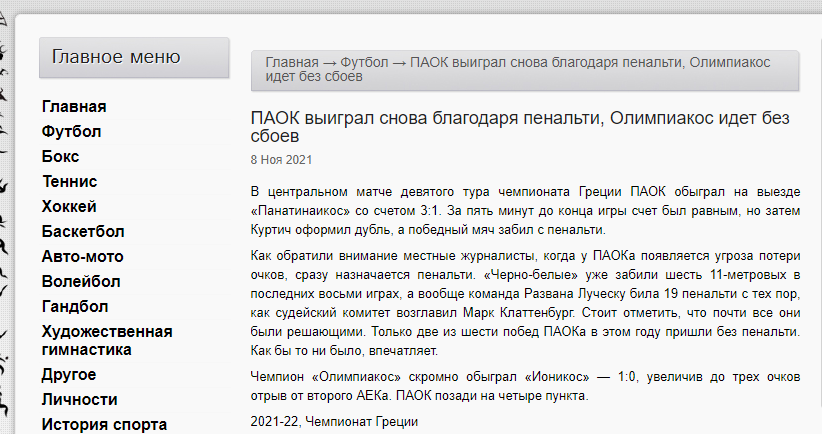 Η ιστοσελίδα prosto-sport.com με έδρα την Ρωσία κάνει αναφορά για τον μεγάλο ρόλο που παίζει η Ελληνική διαιτησία στο να αναρριχηθεί η ομάδα του ΠΑΟΚ στην βαθμολογία.