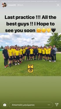 “Τελευταία προπόνηση! Ότι καλύτερο παιδιά!! Εύχομαι να σας δω σύντομα”
