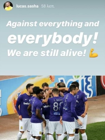 Ο Βραζιλιάνος μέσος του Άρη έγραψε στον λογαριασμό του στα social media:  «Απέναντι όλους και σε όλα, είμαστε ακόμα ζωντανοί!».