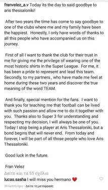Ο Ισπανός αμυντικός έγραψε ένα μακροσκελές μήνυμα στο instagram όπου λέει το δικό του «αντίο» ενώ ευχαριστεί τους ανθρώπους της διοίκησης αλλά και τους φιλάθλους του Άρη για την στήριξη αυτά τα δύο χρόνια που αγωνίστηκε εδώ.