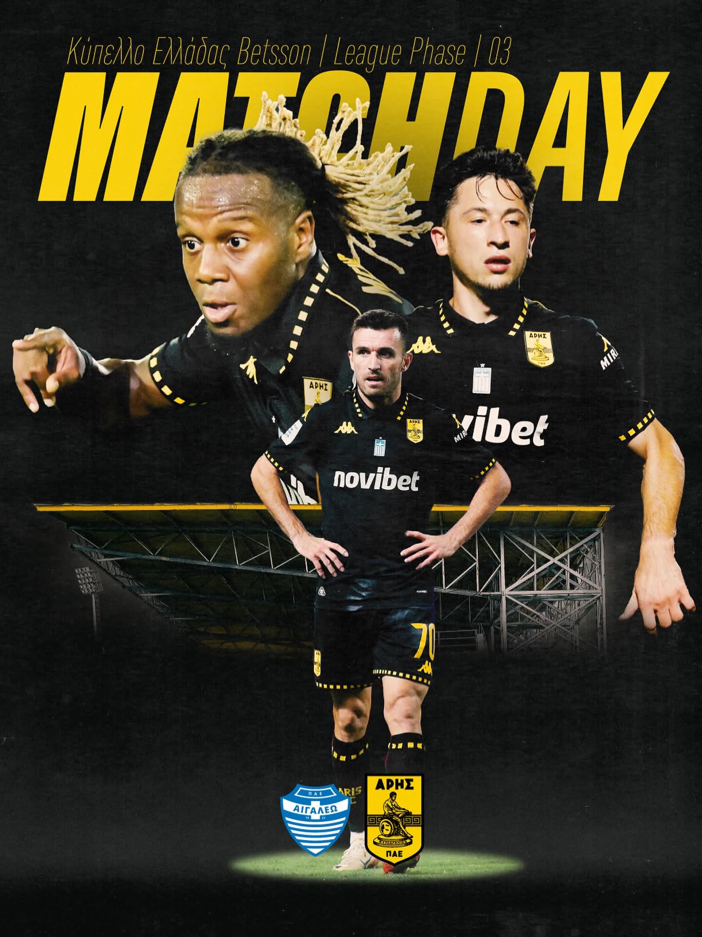 Τρεις ποδοσφαιριστές που ενδεχομένως να αγωνιστούν βασικοί στην σημερινή (29/10, 15:00) αναμέτρηση Κυπέλλου του Άρη με το Αιγάλεω στην Καρδίτσα, επιλέχθηκαν από την ΠΑΕ Άρης για την… αφίσα του αγώνα.