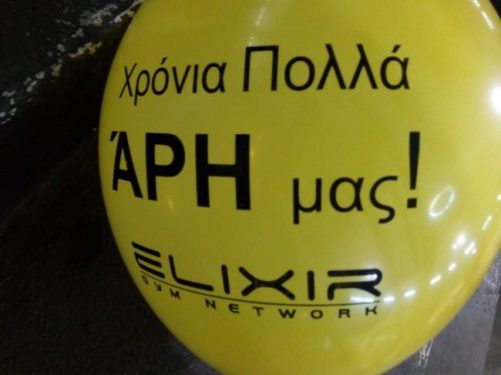 Συγκεκριμένα μπαλόνια σε χρώμα κίτρινο και μαύριο, με επιγραφή “χρόνια πολλά στον Άρη”.