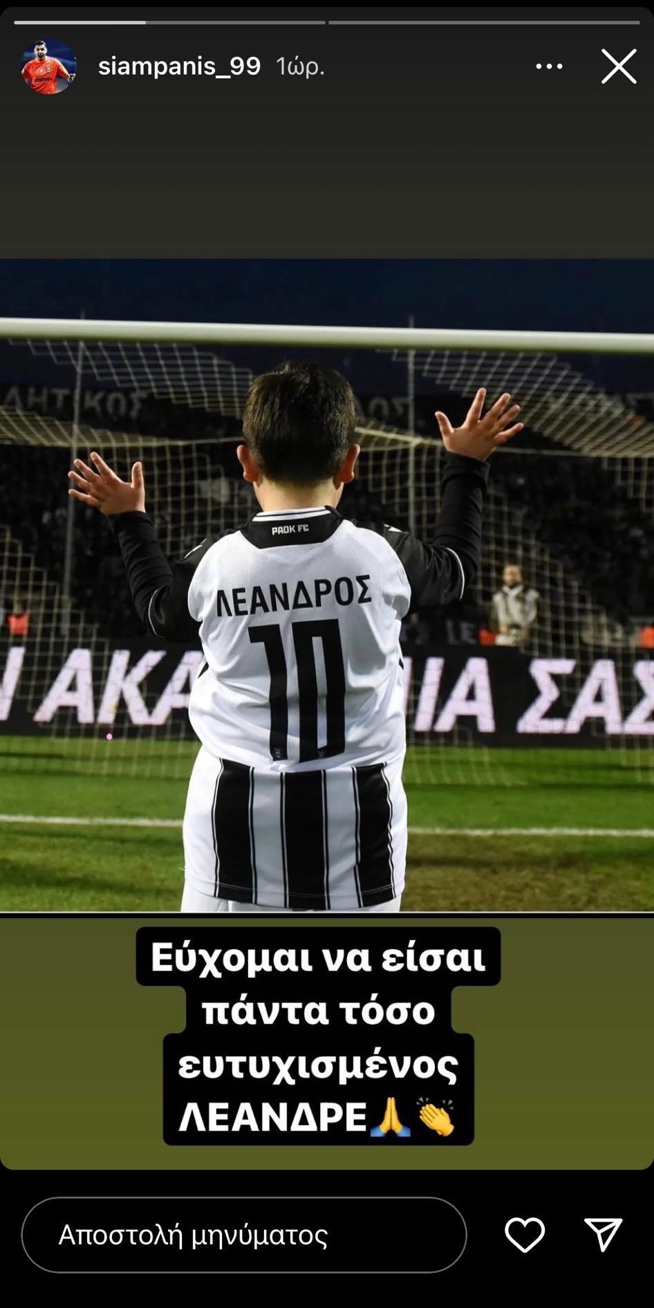 Ο τερματοφύλακας του Άρη, Μάριος Σιαμπάνης, έστειλε το δικό του μήνυμα στον νεαρό φίλαθλο του ΠΑΟΚ. Μέσα από τον προσωπικό του λογαριασμό, σημείωσε: “Εύχομαι να είσαι πάντα τόσο ευτυχισμένος Λέανδρε”!