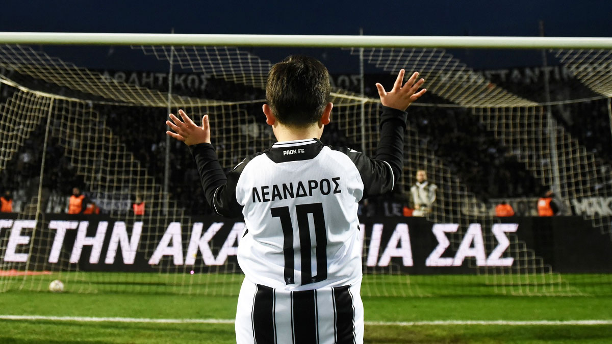 Ο μικρός Λέανδρος, ο οποίος αντιμετωπίζει προβλήματα όρασης, πάτησε στον αγωνιστικό χώρο της Τούμπας και έστειλε την μπάλα στα δίχτυα, πανηγυρίζοντας.