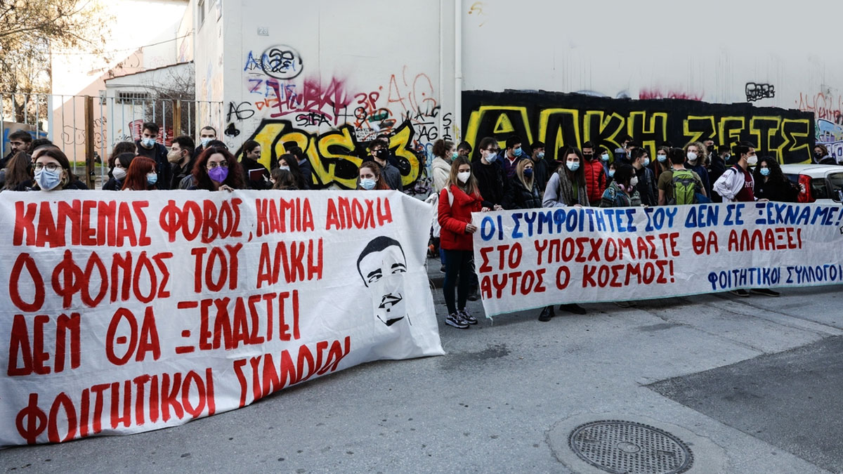 Με την υπόσχεση προς τον Άλκη ότι «αυτός ο κόσμος θα αλλάξει» και πως ο φόνος «δεν θα ξεχαστεί», όπως αναγράφουν και στα πανό τους, φοιτητές και μαθητές πραγματοποιούν αυτήν την ώρα σιωπηρή παράσταση διαμαρτυρίας στη συμβολή των οδών Θεοδώρου Γαζή και Πλαστήρα, στο σημείο δηλαδή που άφησε την τελευταία του πνοή μετά τη δολοφονική επίθεση ο 19χρονος.