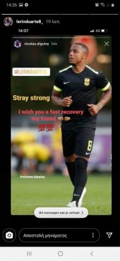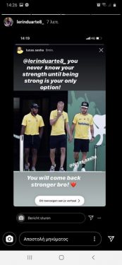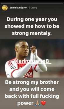 Ο Ντάνιελ Σούντγκρεν όπως και άλλοι συμπαίκτες του έσπευσαν να στείλουν τα δικά τους μηνύματα στον Λερίν Ντουάρτε που στάθηκε άτυχος στον χθεσινό αγώνα καθώς τα αποτελέσματα της μαγνητικής έδειξαν ρήξη πρόσθιου χιαστού!