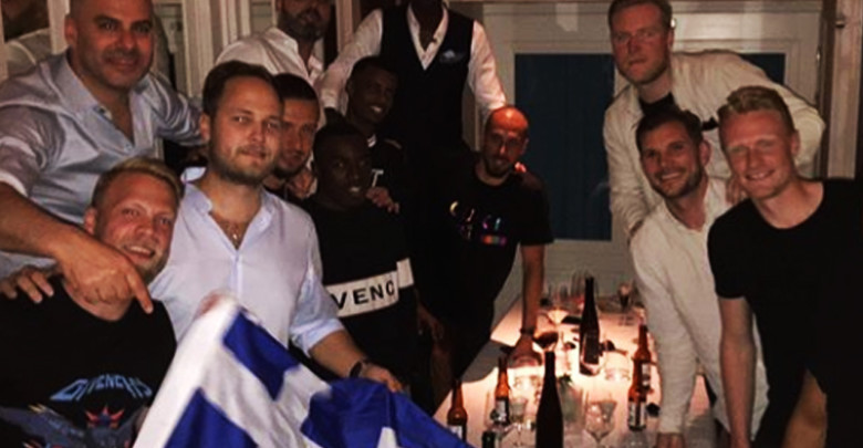 Φίλοι του Σουηδού αμυντικού του επιφύλασσαν μια έκπληξη. Σε δείπνο που διοργάνωσαν τον… έντυσαν με την Ελληνική σημαία, με τον Σούντγκρεν να δείχνει ευτυχής με την εξέλιξη αυτή απόδειξη του ότι έχει ήδη ξεκινήσει να αγαπάει την Ελλάδα.