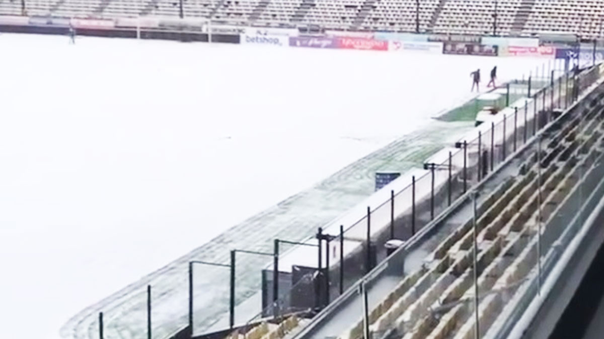 Ο αγωνιστικός χώρος είναι καλυμμένος με χιόνι και οι άνθρωποι της ομάδας έχουν ξεκινήσει από το πρωί εργασίες καθαρισμού του, προκειμένου να γίνει το παιχνίδι κόντρα στον Παναιτωλικό που είναι προγραμματισμένο για τις 15.00.