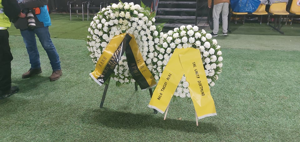 Στεφάνια στο γήπεδο από ΚΑΕ Άρης και Unity Ντόρτμουντ (pic)