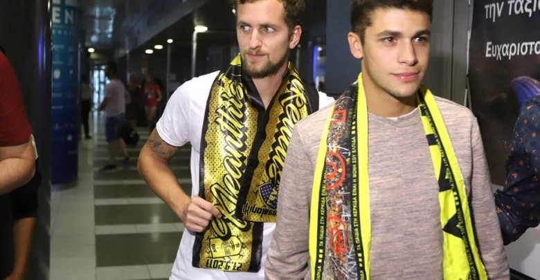 Οι δύο Αργεντινοί έφτασαν στο αεροδρόμιο “Μακεδονία” όπου τους υποδέχθηκαν φίλοι του Άρη για να τους καλωσορίσουν…