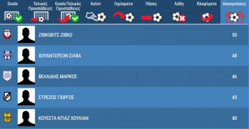 Μετά από 14 αγωνιστικές πρωταθλήματος ο Χουλιάν Κουέστα του Άρη βρίσκεται στην κορυφαία πεντάδα της Σούπερ Λιγκ, με τους τερματοφύλακες που είχαν τις περισσότερες αποκρούσεις.