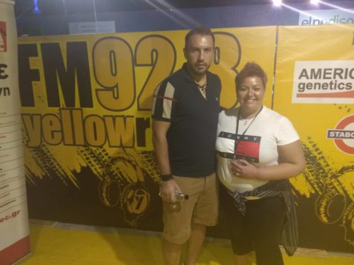 Στο περίπτερο τον υποδέχθηκαν οι παραγωγοί του Yellow Radio 92.8, Νίκος Οικονόμου και Μάριον Συριώτου.