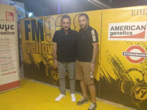 Στο περίπτερο τον υποδέχθηκαν οι παραγωγοί του Yellow Radio 92.8, Νίκος Οικονόμου και Μάριον Συριώτου.