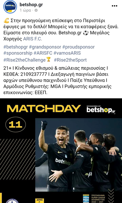 Μήνυμα νίκης έστειλε ο μεγάλος χορηγός του Άρη, betshop, ενόψει του αγώνα με τον Ατρόμητο στο Περιστέρι.