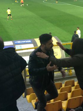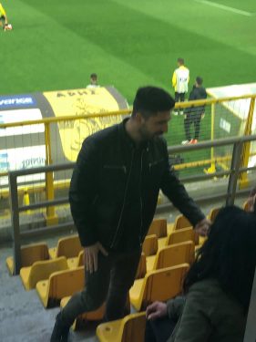 Ο 30χρονος επιθετικός πρώτη φορά βρέθηκε στο γήπεδο μετά την εγχείρηση του για να παρακολουθήσει την αγαπημένη του ομάδα, αλλά και τον φίλο του, Θωμά Ναζλίδης, που είναι πλέον μέλος του Απόλλων.