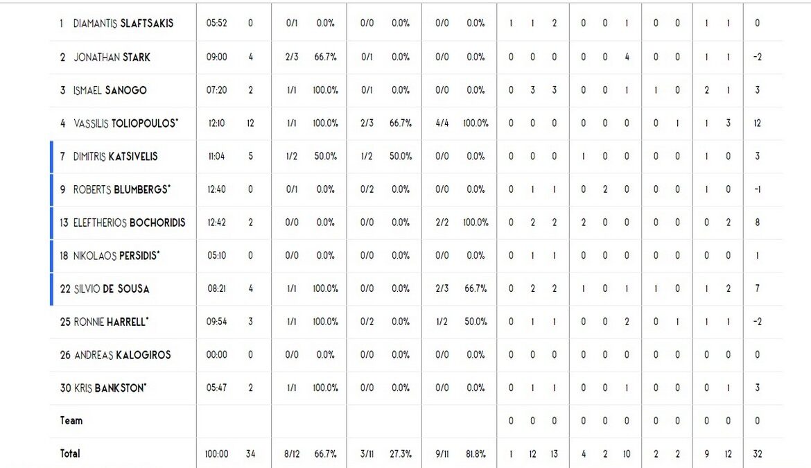 Στο -7 ο Άρης – Τα στατιστικά των παικτών (pic)