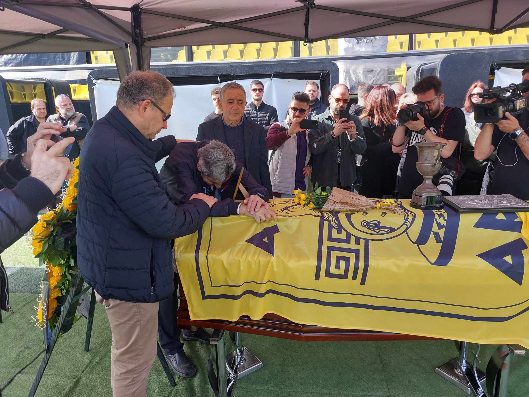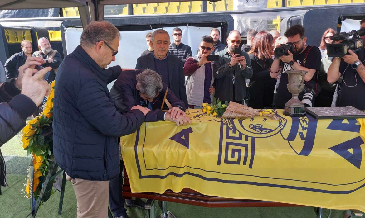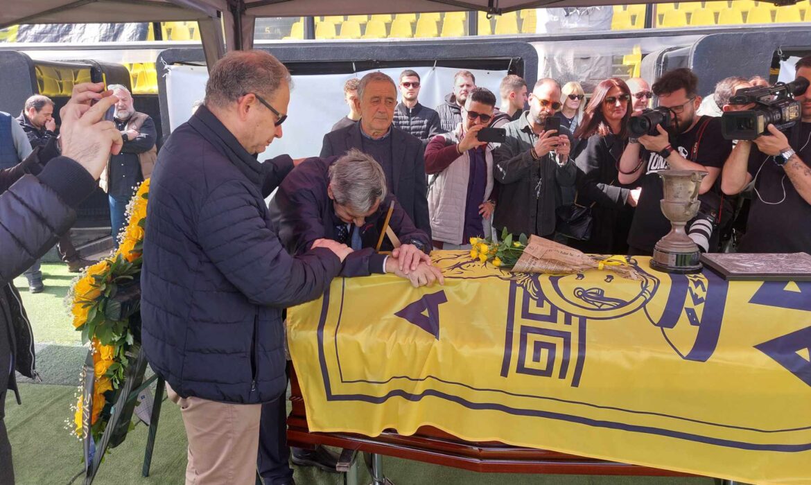 Ο Άγγελος Σπυρίδων, ένας εκ των αθλητών που τιμωρήθηκαν από τη χούντα μαζί με τον Αλέκο Αλεξιάδη βρέθηκαν στο Κλεάνθης Βικελίδης για να πουν το τελευταίο αντίο.