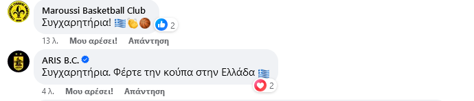 “Συγχαρητήρια, φέρτε την κούπα στην Ελλάδα” αναφέρει η ΚΑΕ Άρης.