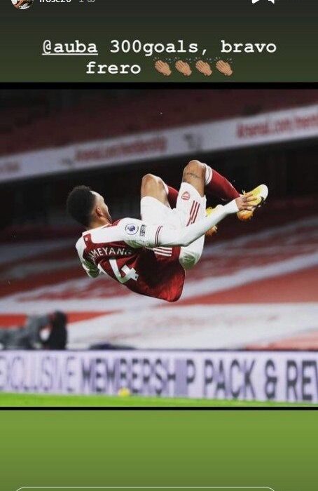 Ο Ομπαμεγιάνγκ συμπλήρωσε τα 300 γκολ με την φανέλα της Άρσεναλ, και ο κεντρικός αμυντικός του Άρη του έδωσε «συγχαρητήρια» μέσα από τον προσωπικό του λογαριασμό στο instagram.