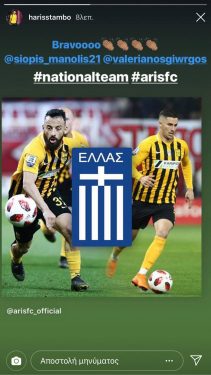 Ο Ελληνοαυστραλός συγχάρηκε τους δυο παίκτες του Άρη μέσω του προσωπικού του λογαριασμού στο Instagram.