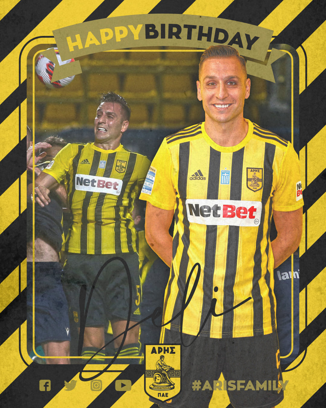 Τα 34 χρόνια ζωής κλείνει σήμερα ο Γιώργος Δεληζήσης και η ΠΑΕ Άρης έστειλε τις δικές της ευχές μέσω των Social Media. Ο ίσιος θέλει για δώρο ένα πολύ καλό αποτέλεσμα της ομάδας απέναντι στον ΟΦΗ.
