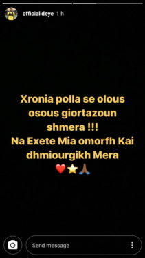 “Χρόνια πολλά σε όλους όσους γιορτάζουν σήμερα!! Να έχετε μια όμορφη και δημιουργική μέρα” έγραψε ο Νιγηριανός στο Instagram.