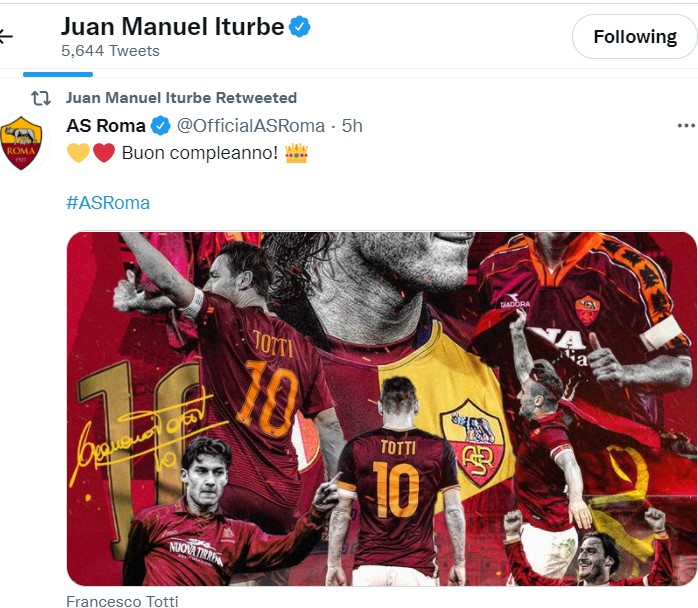 Ο Φραντσέσκο Τότι και ο Χουάν Ιτούρμπε συνδέονται με φιλία, που εδράζεται στην κοινή παρουσία τους στη Ρόμα και η οποία είχε εξελιχθεί σε… οικογενειακή σχέση, μιας και οι σύζυγοι των δύο ποδοσφαιριστών, έκαναν επίσης παρέα στη Ρώμη.