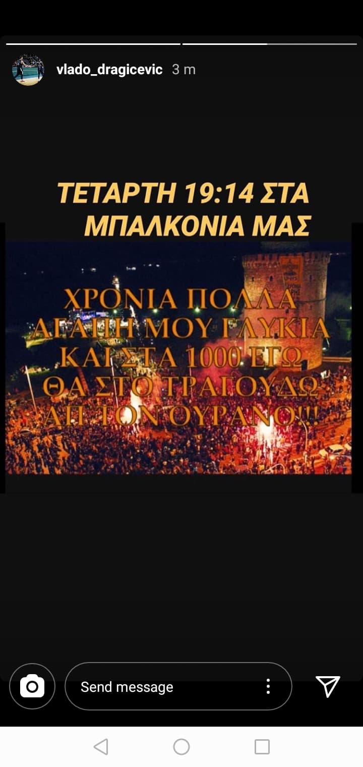 Στο προσωπικό του λογαριασμό στο Instagram ανήρτησε ο Βλαντιμίρ Ντραγκίσεβιτς τον τρόπο που όλοι οι φίλοι του Άρη θα γιορτάσουν τα 106 χρόνια του συλλόγου