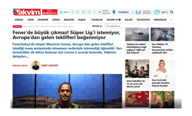 Νέο δημοσίευμα της τουρκικής εφημερίδας “Takvim”, φέρνει στο φως νέες πληροφορίες σχετικά με την απόκτηση του Μαουρίσιο Λέμος από τον Άρη.