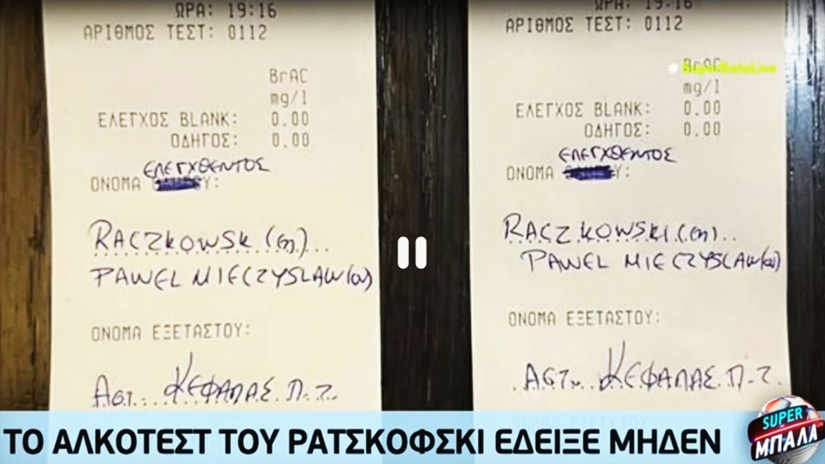 Η αθλητική εκπομπή του MEGA, SUPER Μπάλα LIVE, έβγαλε στο προσκήνιο το αλκοτέστ του Ρατσκόφσκι, που έδειξε μηδέν. Αυτό πρακτικά δείχνει πως ο Πολωνός ρέφερι δεν ήταν υπό την επήρεια αλκοόλ.