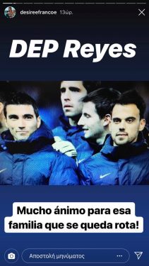 Η Ισπανίδα σύντροφος του Χαβιέ Ματίγια, ανάρτησε στον προσωπικό της λογαριασμό μια φωτογραφία με πρωταγωνιστές τον αδικοχαμένο Ρέγιες και τον σύντροφο της, Ματίγια, γράφοντας το δικό της αντίο.