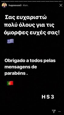 Ο Ούγκο Σόουζα μετά το τέλος των γενεθλίων του θέλησε να ευχαριστήσει τους διαδικτυακούς του φίλους για τις ευχές τους