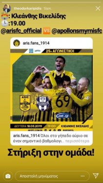 Ο Θεόδωρος Καρυπίδης κάλεσε μέσω των Social Media τον κόσμο του Άρη να παρευρεθεί αύριο στο Κλεάνθης Βικελίδης για να στηρίξει την ομάδα.