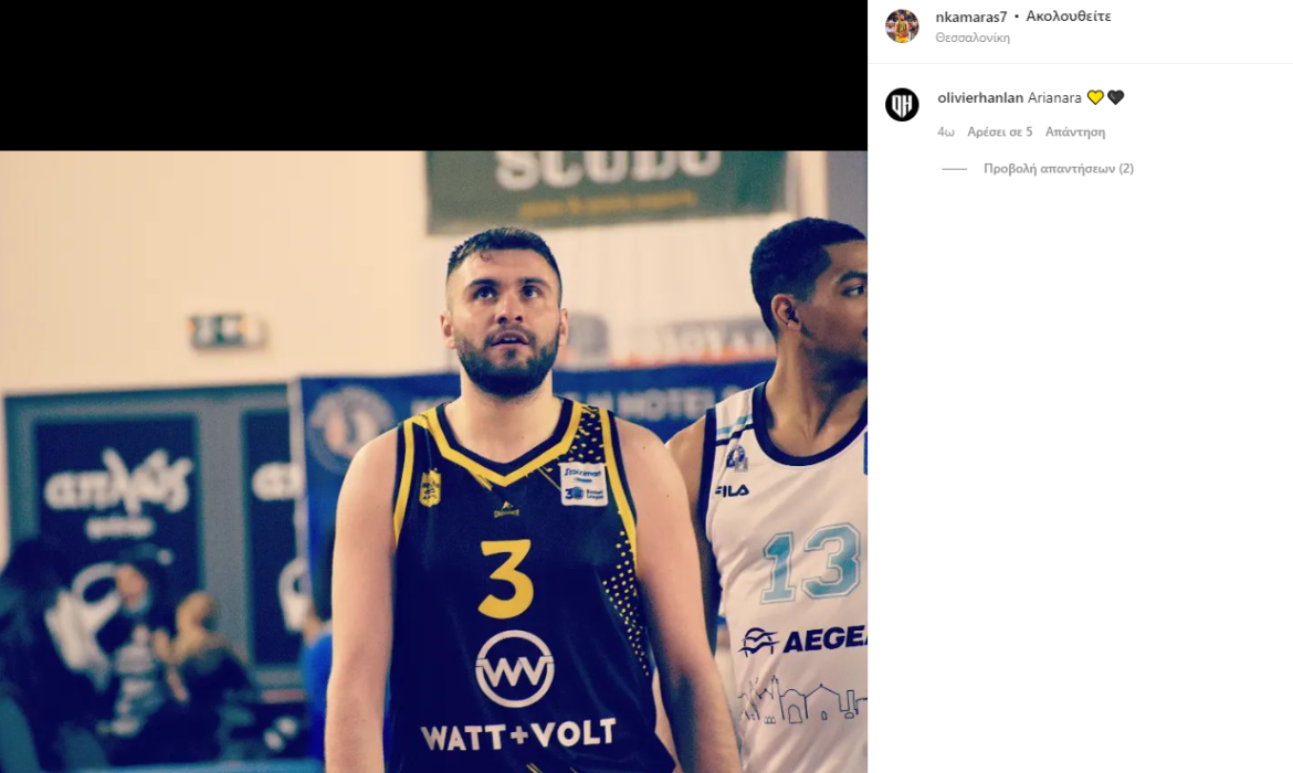 Ο Νίκος Καμάρας δημοσίευσε στον προσωπικό του λογαριασμό στο instagram μία εικόνα στην οποία εμφανίζεται ο ίδιος με τη φανέλα του Άρη, με τον πρώην συμπαίκτη του στους κιτρινόμαυρους, Ολιβιέ Χάνλαν να μη χάνει την ευκαιρία να σχολιάσει.