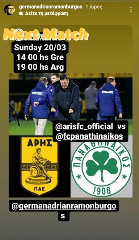 Mε ποστάρισμά του στο instagram ο Αργεντινός τεχνικός του Άρη έδειξε τις διαθέσεις του, για τον επόμενο αγώνα των πλέι οφ κόντρα στους πράσινους.