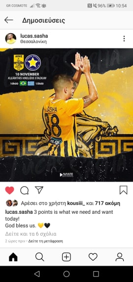 Ο Βραζιλιάνος μέσω του λογαριασμού του στο ίνσταγκραμ έστειλε το μήνυμα του για τον αγώνα με τον Αστέρα Τρίπολης.