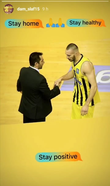 Ο καλαθοσφαιριστής των «κιτρινόμαυρων» δημοσίευσε ένα στιγμιότυπο με τον Σάββα Καμπερίδη γράφοντας: «Stay gome, stay healthy, stay positive».