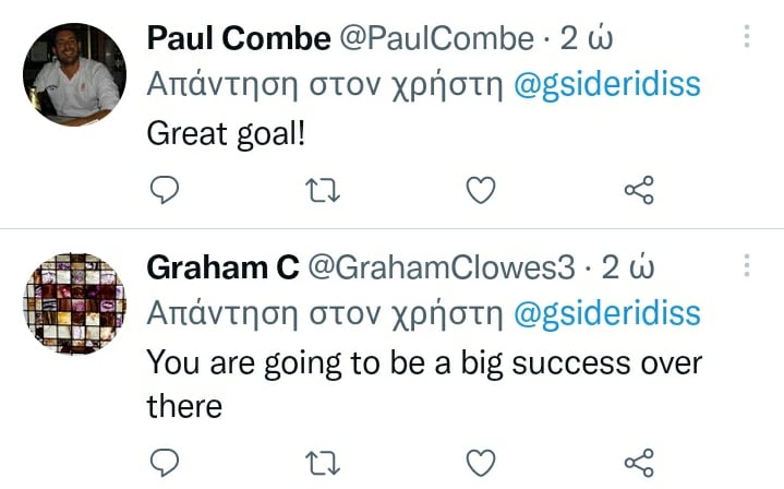 Αρκετοί είναι απλά θετικοί γράφοντας «Σπουδαίο γκολ» και «Θα έχεις μεγάλη επιτυχία εκεί πέρα».