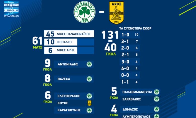 Το Παναθηναϊκός – Άρης μέσα από τα στατιστικά στοιχεία της Super League