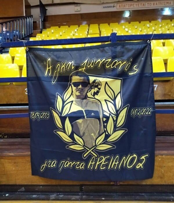 Το πανό των φίλων του Άρη στο βόλεϊ: “Άλκη ζωντανός για πάντα Αρειανός…” (pic)