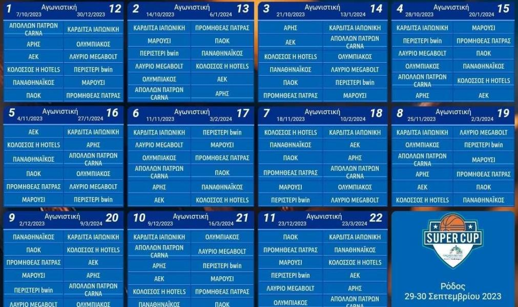 Ολοκληρώθηκε η κλήρωση του πρωταθλήματος και πλέον το πλήρες πρόγραμμα με τις ημερομηνίες του πρωταθλήματος μπάσκετ είναι γνωστό.