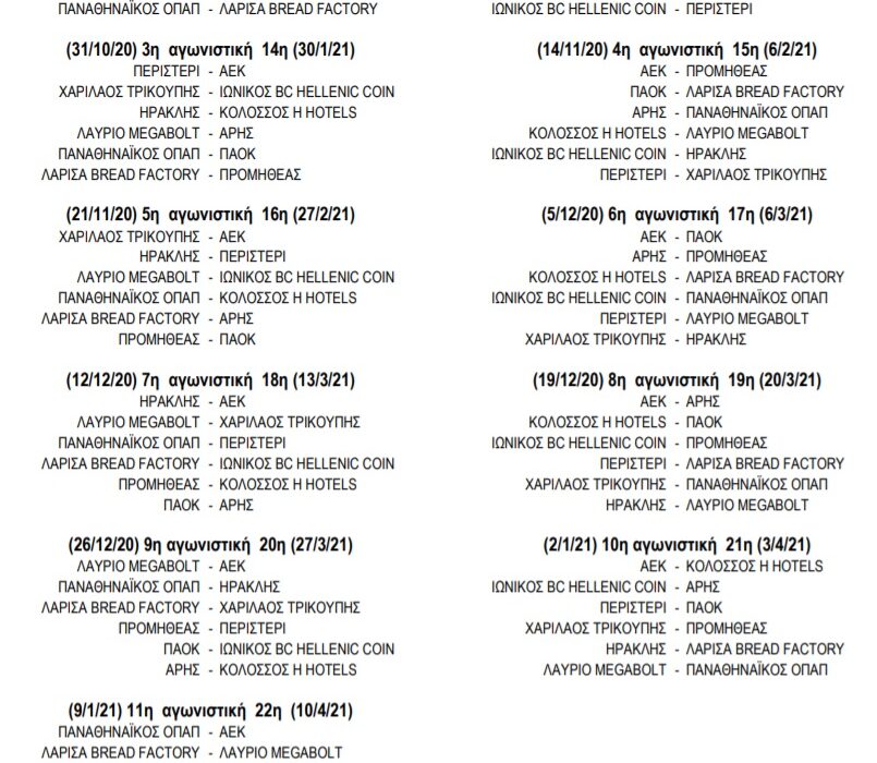 Το ντέρμπι με τον ΠΑΟΚ θα είναι εκτός έδρας για την 7η αγωνιστική (12/12) αλλά και την 18η (13/3). Απέναντι στην ΑΕΚ οι αγώνες θα γίνουν 8η και 19η αγωνιστική, ενώ με τον Παναθηναϊκό 4η και 15η αγωνιστική.